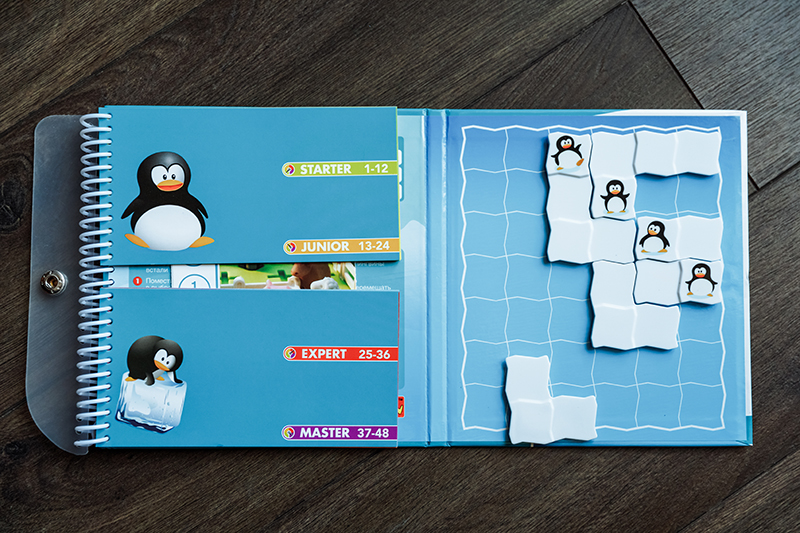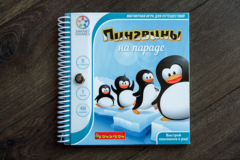 2. «Пингвины в ряд» для деток 5+. Тут название говорит само за себя. Требуется расположить детали с пингвинчиками таким образом, чтобы они выстроились в ряд по горизонтали, по вертикали или по диагонали. Казалось бы, ничего сверхъестественного, но все выполнено очень мило. Одна из любимых игр из магнитной серии.