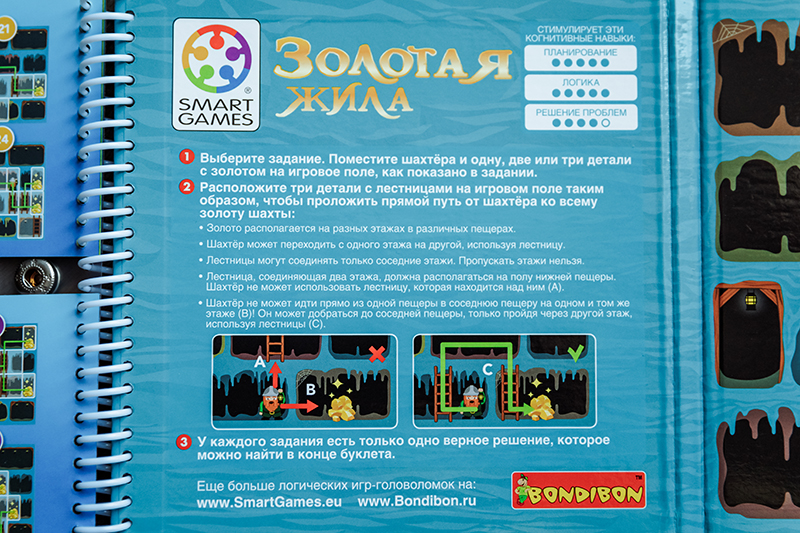 4. «Золотая жила» 6+. Нужно расположить детали лесенок таким образом, чтобы помочь гномику добраться до золота. Лично мне графика игры понравилась, но вот наш сын не оценил темные тона и тему подземелья. Да и рановато для четырехлетки по сложности, так что свою мы отложили на будущее.