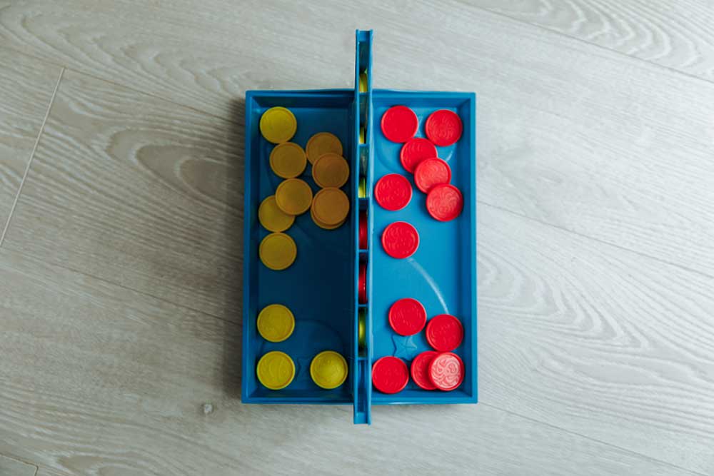 По комплекту у нас без излишеств: игровое поле и монетки диаметром 3 см (по 21 шт. красного и желтого цвета). Все это упаковано в картонную коробку размером 26х26х4 см. По исполнению все просто и бюджетно, но довольно качественно. Пластик без запаха, очень легкий, но внешне довольно прочный, прокрашено все качественно, без зазубрин. К исполнению претензий нет.