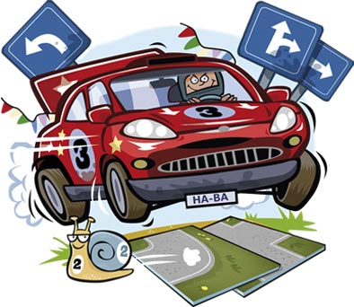 Можно рискнуть и просто ехать в неизвестность, а можно попробовать заранее подготовить себе удобную дорогу, если конечно, вы знаете где лежит нужный тайл. На этом и построена игра: игроки перемешивают трассу, рискуют, путают друг друга, проявляют невероятные умственные способности и вырываются вперёд! Кто же окажется самым умным гонщиком?
