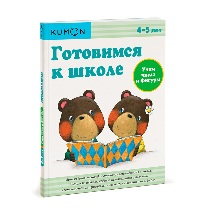 Все пособия KUMON используют принцип «от простого к сложному». Так, в первой части этой тетради ребёнку предстоит сначала соединять линией числа по порядку. Во второй части ребёнок будет учиться писать числа от 1 до 10. В третьей — считать количество предметов и точек и вписывать соответствующие числа в пустые клетки таблицы. Эти задания отлично тренируют навыки порядкового счёта и письма. Четвёртая часть тетради знакомит ребёнка с простыми геометрическими фигурами: кругом, овалом, квадратом, прямоугольником, треугольником и ромбом.