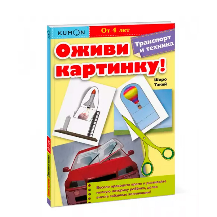 Этот сборник заданий продолжает развивать навыки по методике индивидуального обучения KUMON в разделе «Вырезать и клеить». Серия тетрадей «Оживи картинку!» направлена на развитие мелкой моторики. Ребенку предстоит вырезать детали разной формы и приклеивать их на картинки. С готовыми аппликациями можно играть! Например, стоит подвигать деталью и пожарная машина потушит пожар, а ракета взлетит. Интерактивные задания помогут вовлечь ребенка в процесс занятий! Тетрадь подойдет для детей, которые уже освоили работу с ножницами, научились складывать бумагу, а также освоили работу с клеем.