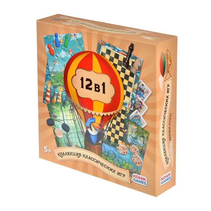 Мультинабор 12 в 1 от Konik Games – это настольные игры для всей семьи на все случаи жизни. В комплект входят 12 популярных классических игр на логику, тактику, стратегию, внимание и пространственное мышление. Шахматы, шашки, уголки, крестики-нолики, нарды, манкала, “Змеи и лестницы”, “Свинка”, “10 000”, “Дурак”, “Верю - не верю”, “Девятка”.