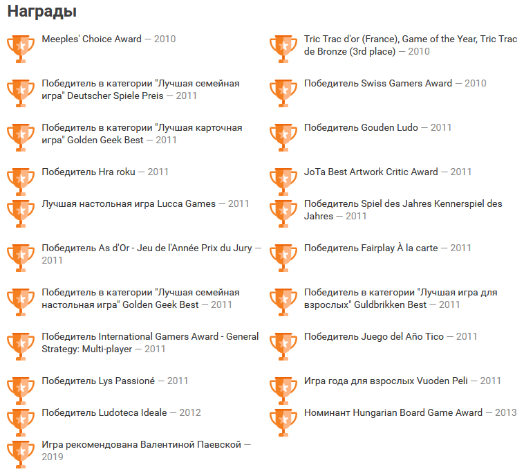Эта яркая стратегическая настольная игра, необычайно динамичная для игр её класса, уже завоевала популярность во всём мире. С момента своего появления она получила уже более 30 международных наград, в том числе стала игрой года (2011) в Германии и во Франции, и является самой титулованной игрой в мире. Игра перенесёт вас на тысячелетия назад – туда, где вы сами будете вершить историю, создавать цивилизации и сможете построить архитектурное чудо, которое переживёт века!