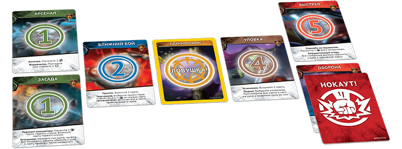 Стоит заметить, что в бою также присутствуют особые карты. Так, например, карта "Нокаут" может незамедлительно вывести игрока из боя, а карта "Ловушка" наносит один урон и при этом остаётся в игре.