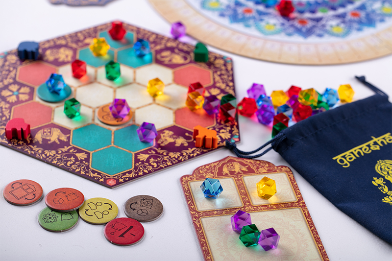 Проведите уютный семейный вечер или встречу с друзьями за партией в увлекательную игру «Ганеша», посвящённую богу мудрости и благополучия, одному из самых известных и почитаемых индуистских богов.