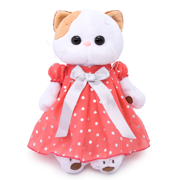 Ли-Ли в очаровательном платье нежно-кораллового цвета в серебристый горох. Платье сшито со встречными складочками от горловины, рукавчиками-фонариками и спереди украшено бантом из широкой серебристой ленты.