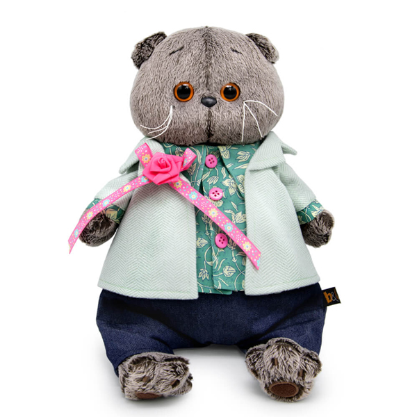 Басик в твидовом пиджаке с розой (19 см). Мягкая игрушка