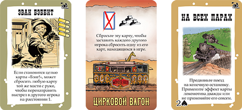 Все игроки оказываются на настоящем Диком Западе и случайным образом получают различные роли: Вы можете стать Шерифом, его Помощником, Бандитом или даже Отступником. Затем идёт выбор персонажей, каждый из которых уникален своими способностями. Вся соль игры в том, что игрокам известен лишь Шериф, а вот остальные роли скрыты и остаётся только догадываться, кто есть кто! Накаляет обстановку также и то, что у каждой роли свои условия победы: Шерифу нужно подстрелить всех бандитов и Отступника; бандитам – шерифа, но и друг друга они пострелять тоже не против; а Отступнику нужно просто остаться последним в живых. Различные действия совершаются за счёт простого розыгрыша карт: начиная с глотка пива для восстановления здоровья и заканчивая вызовом игрока на дуэль.