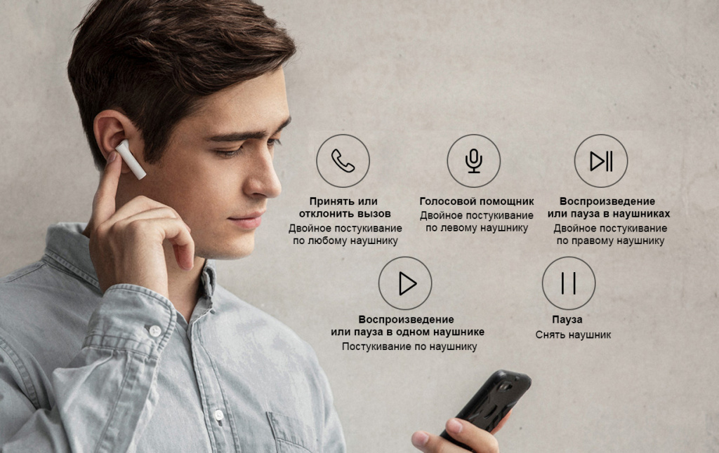 Лёгкими постукиваниями по гарнитуре можно управлять музыкой, звонками,
