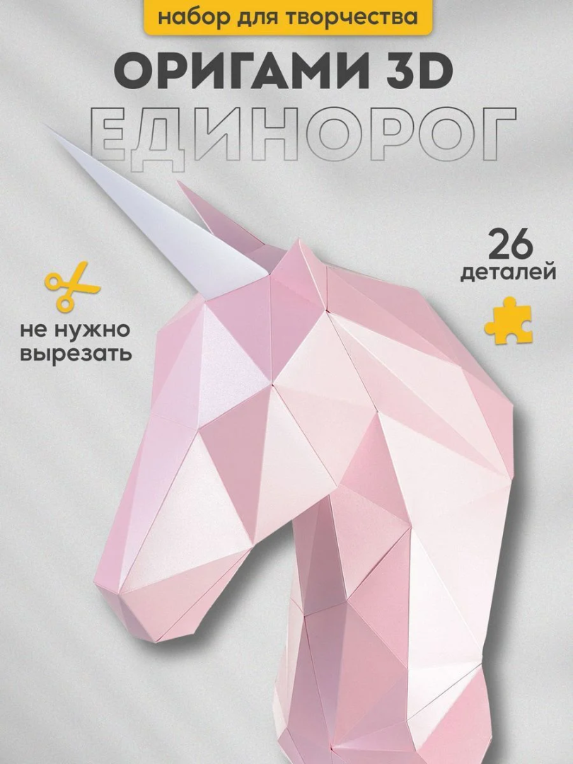 3D-конструктор для сборки полигональной модели трофейной головы «ЕДИНОРОГ ЗЕФИР» из дизайнерского картона.