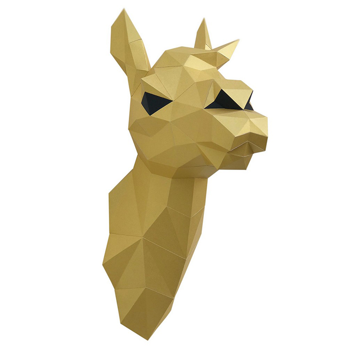 3D-конструктор PAPERRAZ для сборки полигональной модели «ЛАМА СВЕТЛАНА (золотая)» из дизайнерского картона.