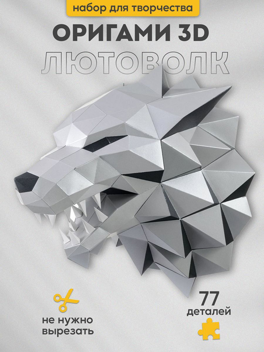 3D-конструктор для сборки полигональной модели трофейной головы «ЛЮТОВОЛК» из дизайнерского картона.