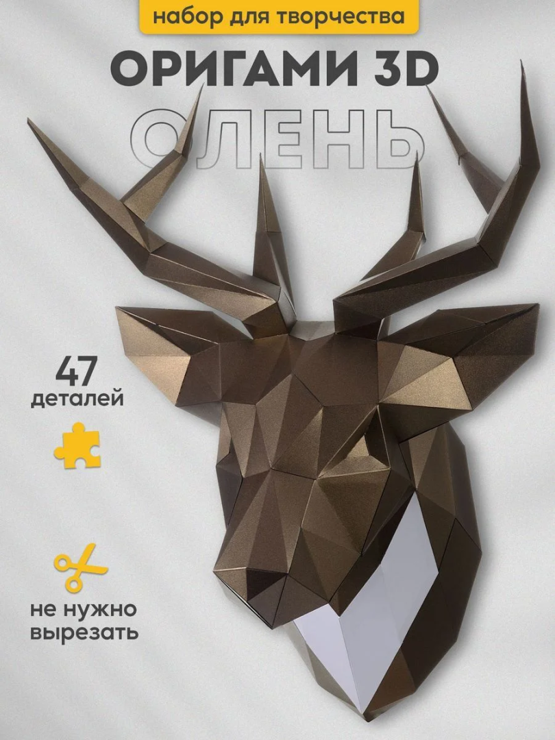 3D-конструктор для сборки полигональной модели трофейной головы «ОЛЕНЬ ПЕТРОВИЧ» из дизайнерского картона.