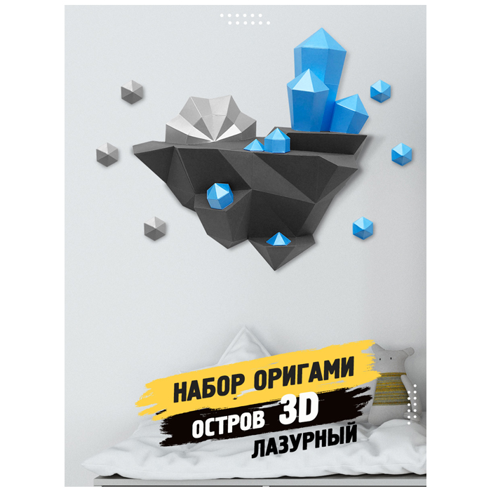 3D-конструктор PAPERRAZ для сборки полигональной модели «ОСТРОВ С КРИСТАЛЛАМИ (лазурный)» из дизайнерского картона.