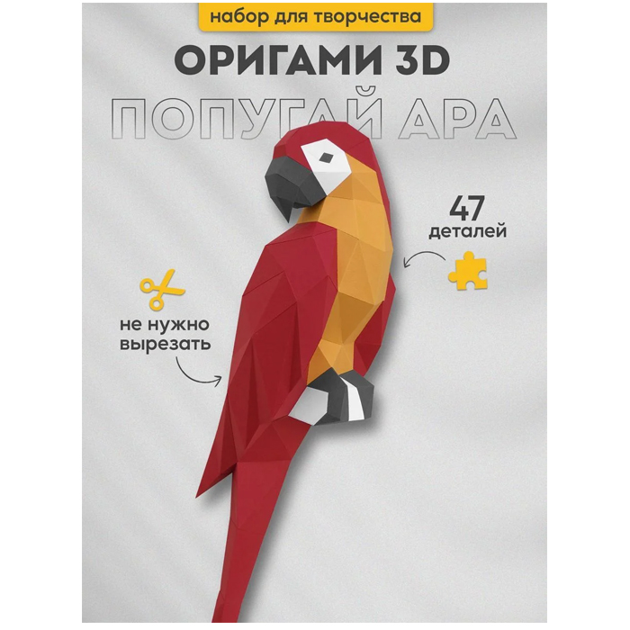 3D-конструктор PAPERRAZ для сборки полигональной модели «ПОПУГАЙ АРА (красный)» из дизайнерского картона.