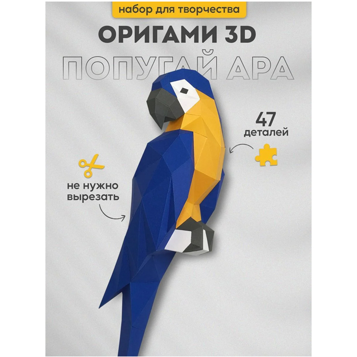 3D-конструктор PAPERRAZ для сборки полигональной модели «ПОПУГАЙ АРА (синий)» из дизайнерского картона.