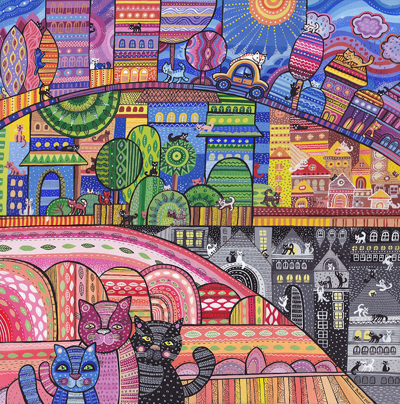 В центре повествования – юмористические истории из жизни котов, населяющих большой город. Только на создание смысловых элементов и композиций в деталях у художника DaVICI ушло более двух месяцев! В процессе творчества родился новый художественный стиль смысловых и вторичных деталей.