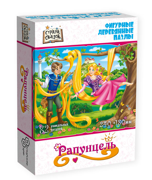 Фигурный пазл отличается от стандартного необычной формой деталей. Кроме того, часть деталей выполнены в форме предметов, связанных с тематикой картинки. В данном случае это герои и предметы, связанные с историей про Рапунцель... Детали пазла выполнены из фанеры. Рисунок нанесен прямо на дерево с помощью специального принтера, он долговечен и не сотрется даже после многократных сборок. Такой пазл понравится и детям, и взрослым, ведь сборка доставляет визуальное и тактильное удовольствие.