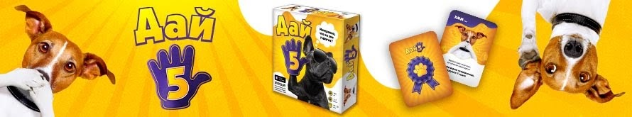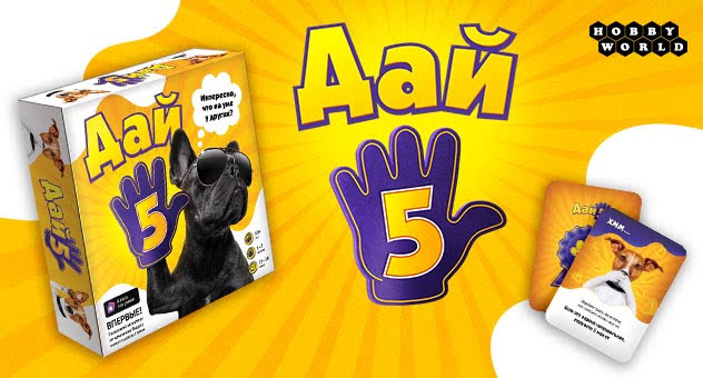 "Дай 5" – настольная викторина, в которой игрокам предстоит отгадывать наиболее популярные варианты ответов на различные интересные и местами странные вопросы. Игроки делают ставки, разыгрывают различные бонусные карты и получают монеты за правильные ответы на вопрос. Игра проста в освоении, чрезвычайно азартна и увлекательна, отлично подойдёт для игры с детьми. В неё можно играть большой компанией, поделившись на команды, можно играть одному или один на один по особым правилам.