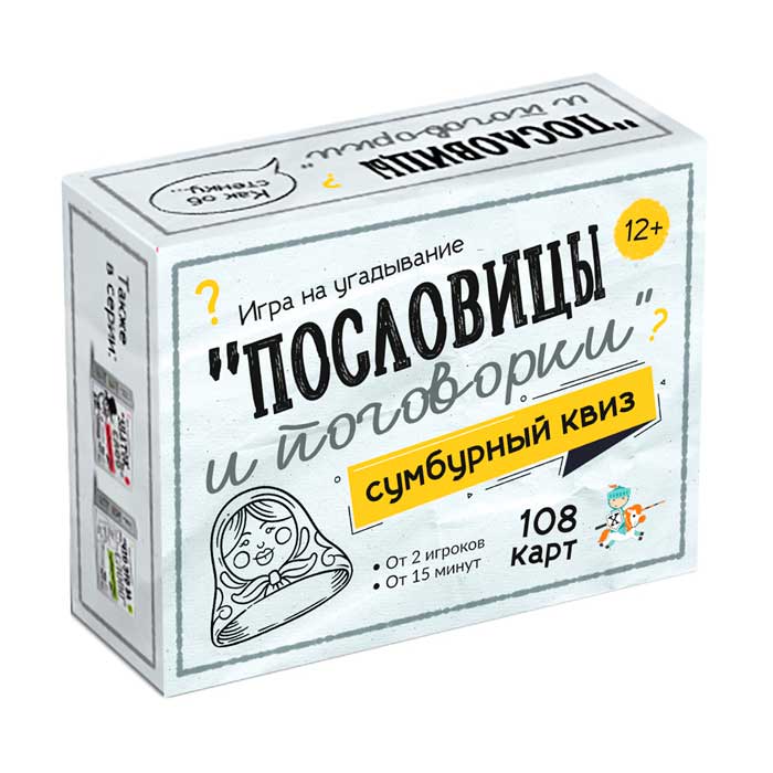 Когда-нибудь задумывались, что это за сыр-бор такой, который постоянно происходит? Почему кто-то должен вязать какое-то лыко? Если задумывались или, более того, даже знаете, что да как, да почему, игра "Пословицы и поговорки" совершенно точно вам понравится! Вы будете по очереди тянуть карточки, на каждой из которых написана поговорка или пословица и приведены три варианта её толкования. Ваша задача – выбрать верный ответ. Проверить себя просто: переверните карту и огласите написанное на обороте. Если вы угадали, заберите её себе. Настоящим эрудитом станет тот, кто к концу приобретёт самую толстую колоду с честно отгаданными вопросами! А самое приятное, побороться за это звание можно как вдвоём с другом, так и в большой компании!