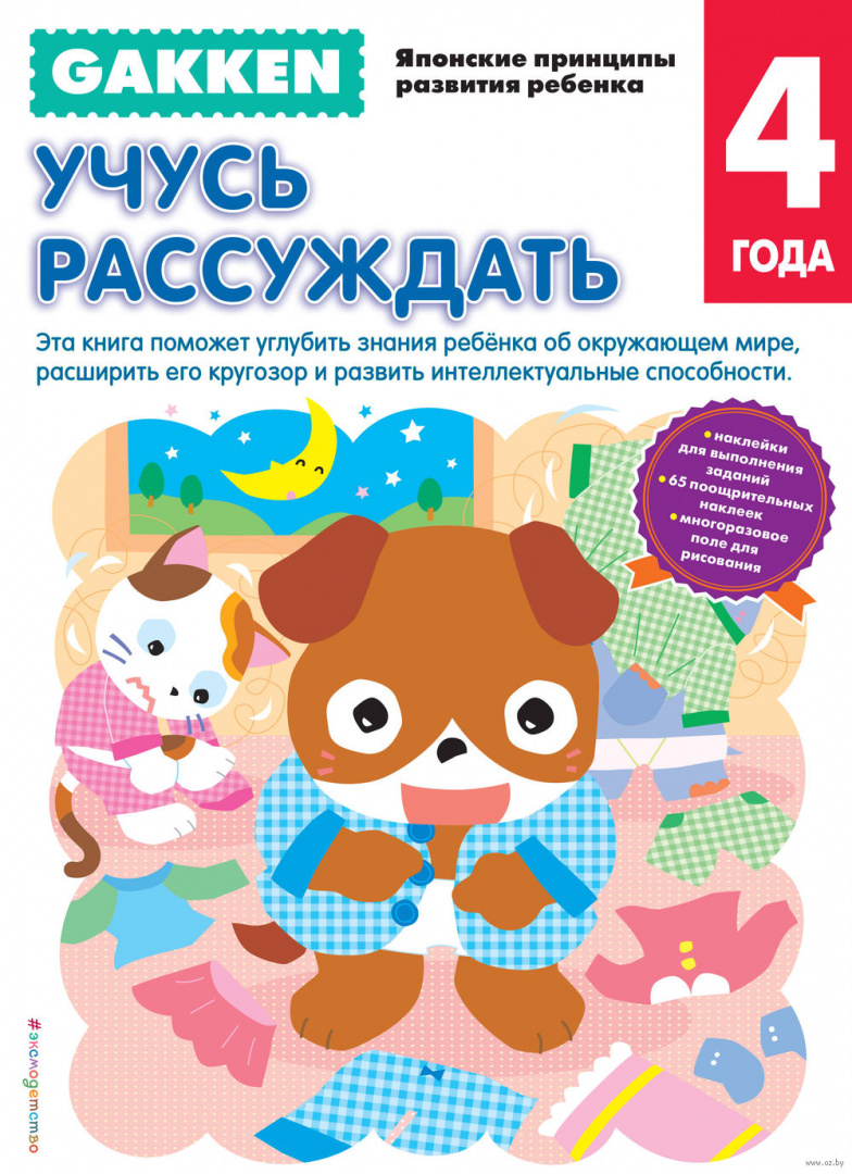 Книга "Учусь рассуждать" поможет родителям познакомить ребенка с понятием противоположности, научить его находить связь между частью и целым, научить малыша играм со словами и в целом поможет развить интеллектуальные способности ребенка.