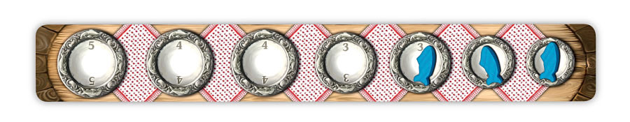 В первую очередь ваш промысловый флот покидает гавань и вскоре возвращается с добычей. Размер улова определяется по шкале, находящейся внизу планшета гавани. Там стоит на якоре ваша рыболовная флотилия… впрочем, поначалу это лишь одинокий бот, напечатанный на планшете. По ходу игры вы будете строить корабли и помещать их здесь же. Размер улова всегда равен наименьшему из видимых чисел на шкале.