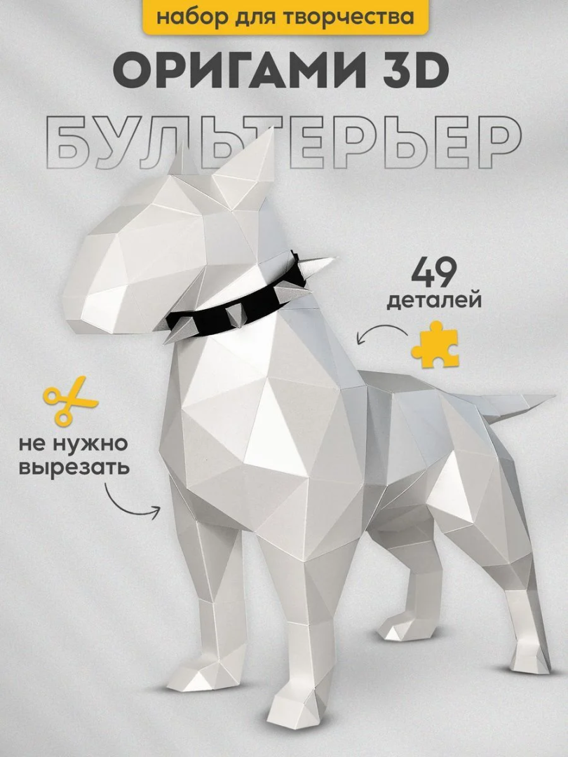 3D-конструктор PAPERRAZ для сборки полигональной модели «БУЛЬТЕРЬЕР ВАЛЕРА» из дизайнерского картона.