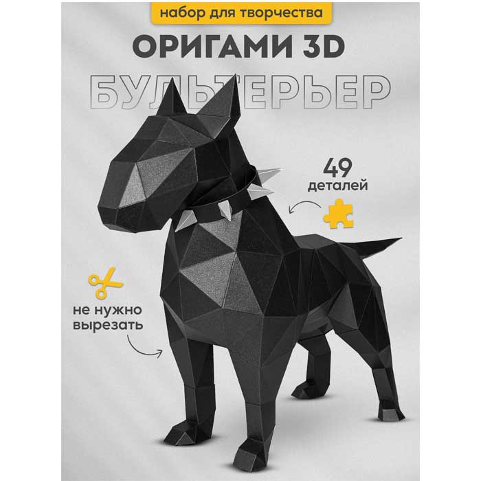 3D-конструктор PAPERRAZ для сборки полигональной модели «БУЛЬТЕРЬЕР ВАЛЕРА» из дизайнерского картона.