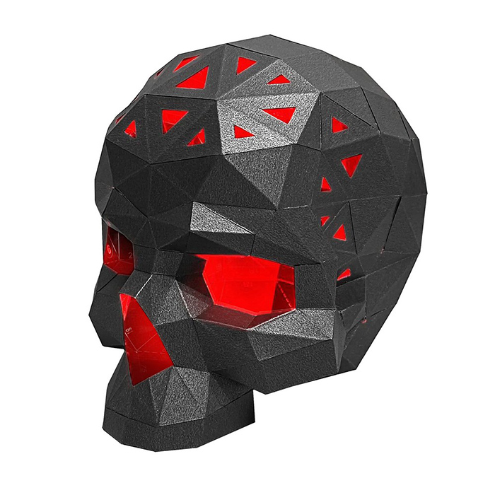 3D-конструктор PAPERRAZ для сборки полигональной модели «ЧЕРЕП» из дизайнерского картона.