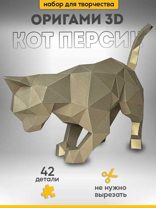 3D-конструктор PAPERRAZ для сборки полигональной модели «КОТ ПЕРСИК» из дизайнерского картона.
