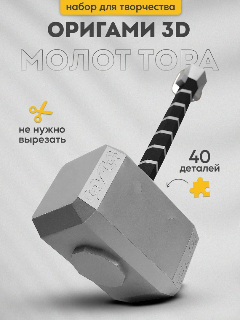 3D-конструктор PAPERRAZ для сборки полигональной модели «МОЛОТ ТОРА» из дизайнерского картона.