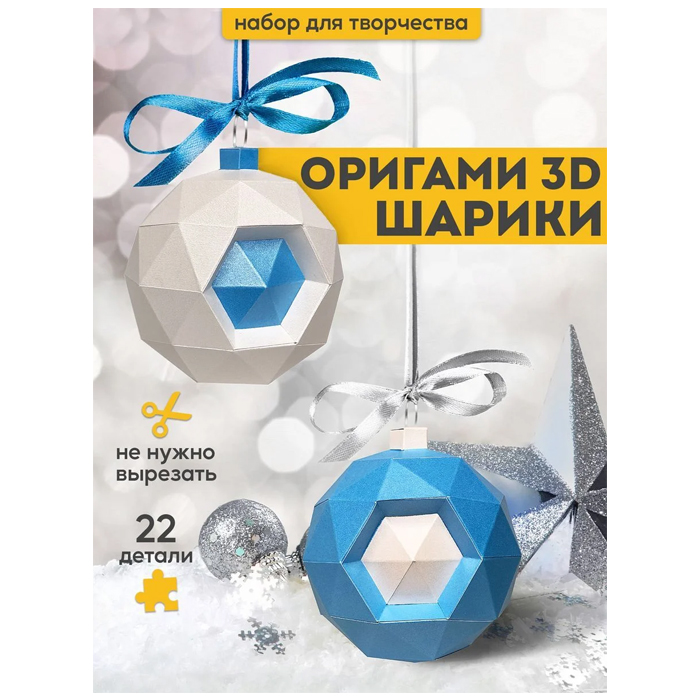 3D-конструктор PAPERRAZ для сборки полигональной модели «ШАРЫ НОВОГОДНИЕ» из дизайнерского картона.