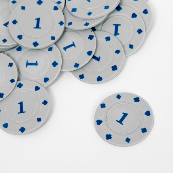 Фишки для покера с номиналом 1, серые, набор 25 шт.