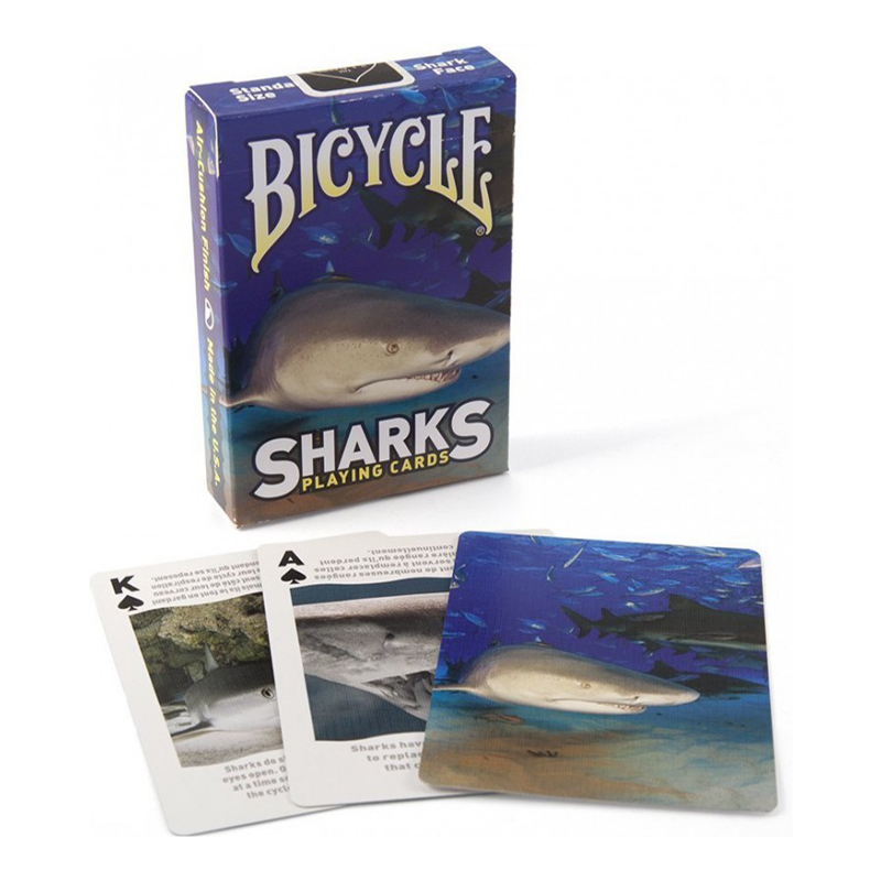 Коллекционные карты Bicycle Sharks с акулами помогают детям и взрослым легко запоминать интересные факты, дарят эстетическое наслаждение и хорошее настроение от игры. Благодаря необычному дизайну и качественному покрытию, эта колода может стать «изюминкой» коллекции для флешеров и карточных фокусников.
