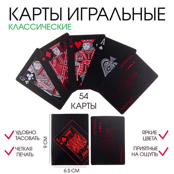 - Классика на все времена: Полная колода с джокерами подходит для всех популярных игр – от "Дурака" и преферанса до бриджа и раскладывания пасьянсов. Это универсальный набор для любой компании и повода.