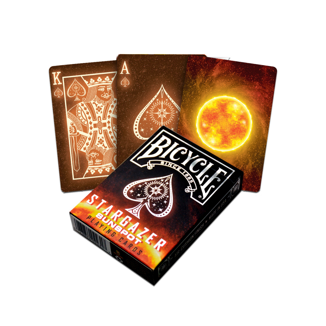 Bicycle Stargazer – это колода карт, сделанная в честь яркой звезды в центре Млечного Пути – Солнца. Дизайн повторяет загадочность космоса, яркость солнца и необъятные масштабы вселенной.