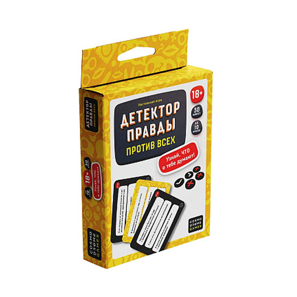 «Детектор правды: против всех» — настольная игра для вечеринок, которая превращает обычные посиделки с друзьями в настоящее шоу с неожиданными откровениями! Простые правила, компактный формат и провокационные вопросы создают атмосферу единения, где скука просто невозможна.