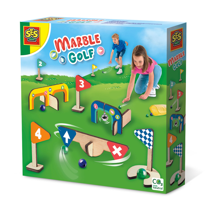 Попробуйте поиграть в игру с шариками Марбл, диаметр которых 14 мм. Создайте свое мини-поле для гольфа при помощи деревянных элементов-препятствий, разместите их в любом месте и начните игру! Кто же победит?