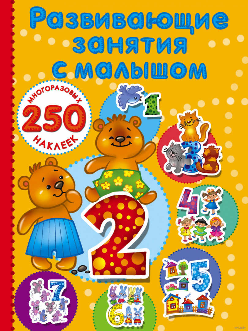 В книге "Развивающие занятия с малышом" ребёнка ждёт 250 чудесных многоразовых наклеек. Занимательные задания и игры с наклейками знакомят малыша с цифрами, геометрическими формами и основными цветами.