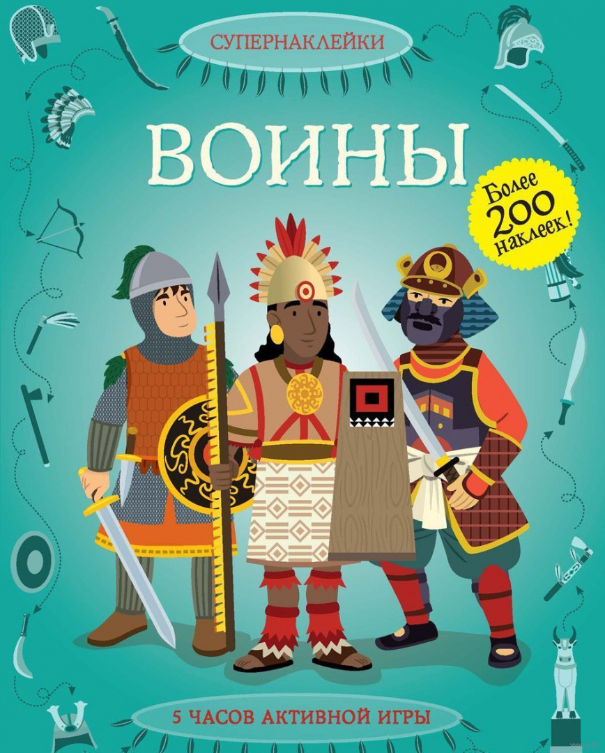 Узнай о самых грозных и храбрых воинах разных веков и народов. Снаряди для битвы монгольских завоевателей, японских самураев, вождя индейского племени при помощи самых разных наклеек.