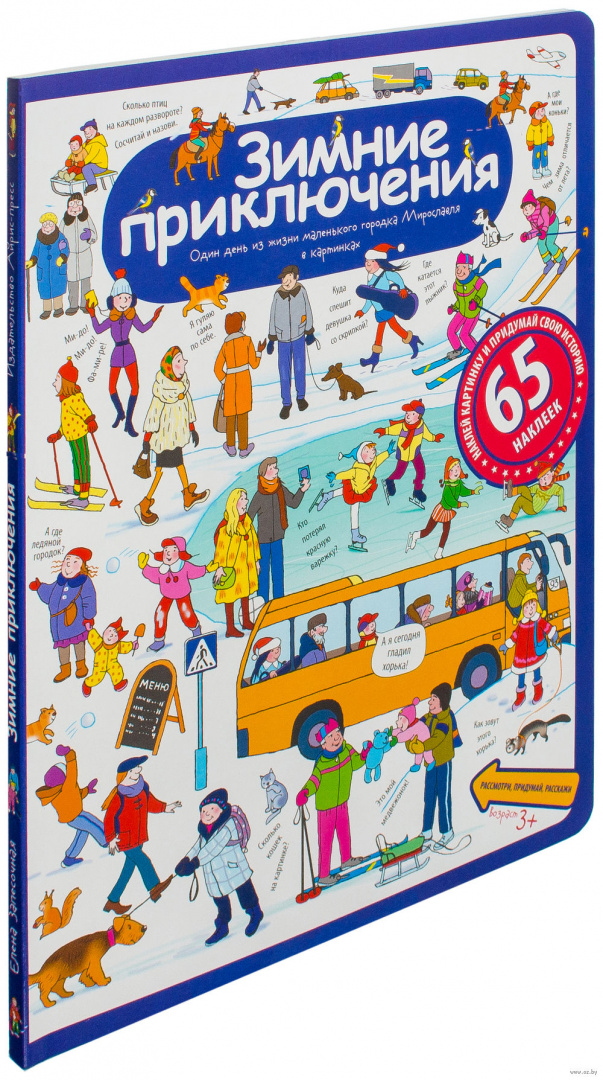 Книга рассказывает об одном зимнем дне из жизни маленького городка Мирославля. Его жители спешат по своим обычным делам, а с некоторыми происходят разные забавные приключения. В книге почти нет текста, но "читать" её можно бесконечно. Это прекрасное пособие для обучения детей рассказу по картинкам. Оно разовьёт воображение, речь, пространственное мышление и восприятие, обогатит словарный запас вашего ребёнка.