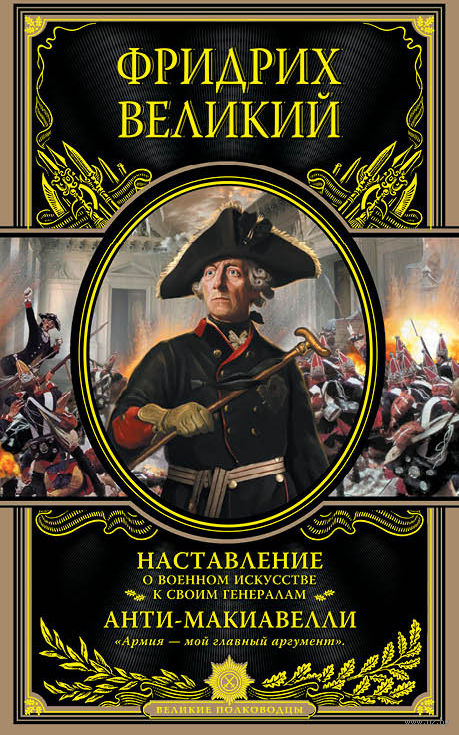 Фридрих II Великий (1712-1786) - «король-солдат» и «король-философ», правивший Пруссией с 1740 по 1786 г. - оставил после себя обширное эпистолярное наследие, касающееся едва ли не всех сторон жизни. В данное издание вошли «Его величества короля Прусского наставление о военном искусстве к своим генералам» - труд, посвященный тактике и стратегии ведения войны и повседневным армейским заботам, и «Анти-Макиавелли» - философский трактат, в котором еще совсем юный король заочно полемизирует с Никколо Макиавелли и его знаменитой книгой «Князь» («Государь»).