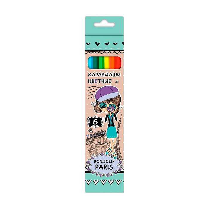 Карандаши цветные Hatber VK Bonjour Paris, 6 цв., заточенные