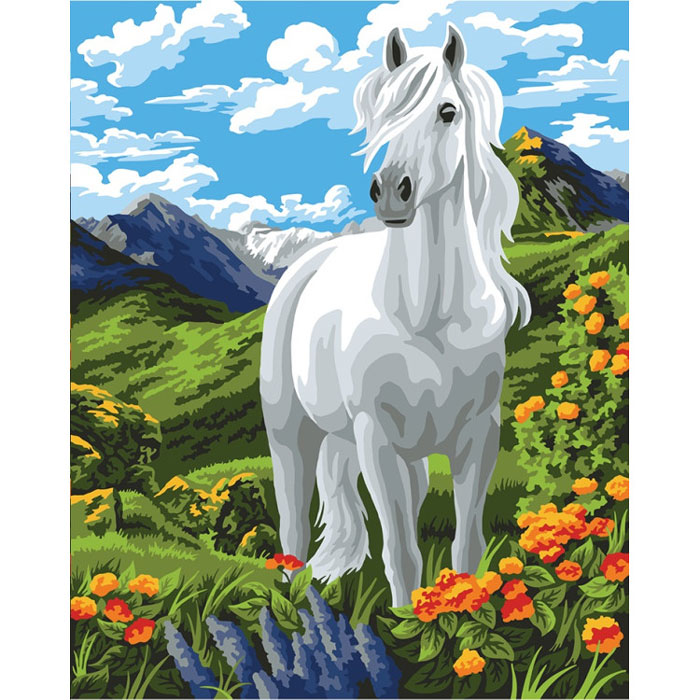 Картина для раскрашивания по номерам Белый конь (на картоне, без подрамника)