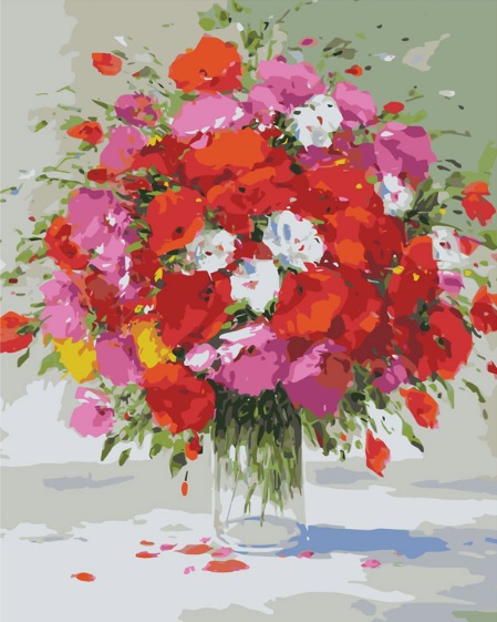 В комплекте есть картонная основа, на картине контурами обозначены области для раскрашивания, внутри областей цифрой отмечен номер необходимой краски. Нужно только аккуратно нанести необходимую краску на отмеченный для нее участок. Таким образом, шаг за шагом, у вас получится великолепная картина.