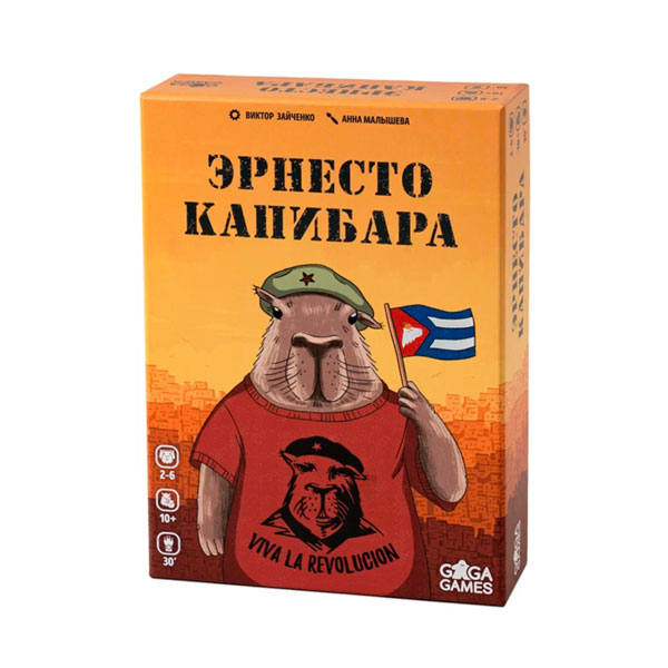 Эрнесто Капибара — карточная игра для 2–6 капибар игроков, в которой симпатичные и очень ленивые животные хотят совершить революцию. Только чужими руками. Устраивайте забастовки, заставляйте других копить напряжение, а сами напрягайтесь как можно меньше. Потому что таков путь к победе и образ жизни капибар.