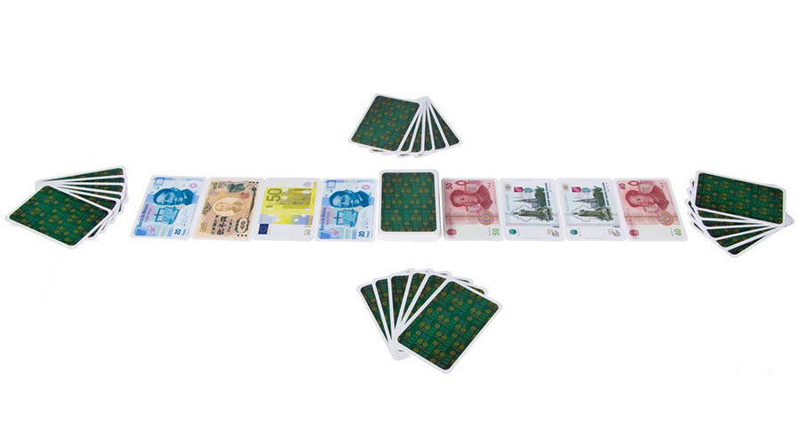 Открывая коробку, вам поначалу кажется, что она полностью забита настоящими купюрами. И лишь присмотревшись, вы понимаете, что это удачно маскирующиеся карточки. Художники смогли уместить почти все популярные банкноты — от китайских юаней до фунтов стерлингов и царских рублей.