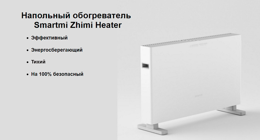 Купить тепловой конвектор Xiaomi Smartmi Zhimi Heater – значит приобрести не только высококачественную вещь, способную служить долго, но и обзавестись полностью безопасным обогревателем, не приносящим вред здоровью человека.