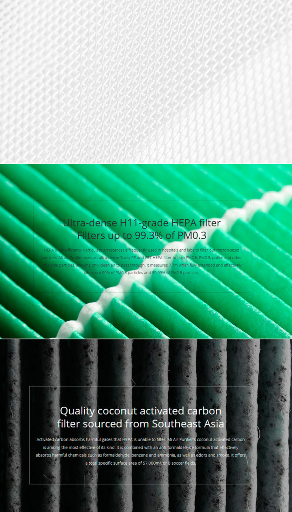 Тщательная разработка каждой детали, через которую проходит поток воздуха. Поскольку, согласно законам аэродинамики, при быстрой и плавной проходимости воздуха, сила сопротивления понижается, и способствует шумоподавлению. Уровень шума 31 децибел в режиме сна, вы едва ли сможете понять, что воздухоочиститель все еще работает. Mi Air Purifier оснащен «умным» бесщеточным электрическим двигателем от всемирно известной японской компании NIDEC, потребляемая мощность которого снизилась на 58% и составляет всего 4.8W, что даже ниже от электропотребления энергосберегающей лампы.